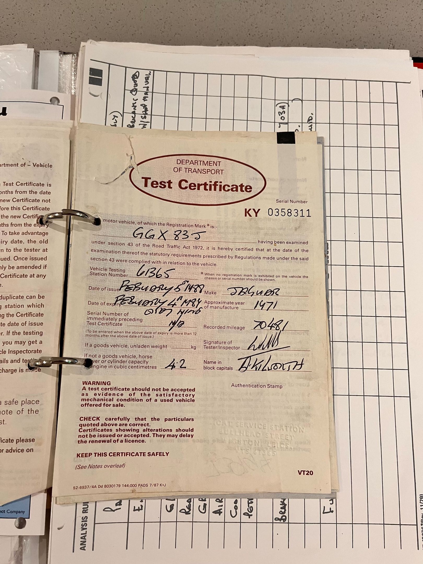• Collection of old MOT certificates dating back to 1988
