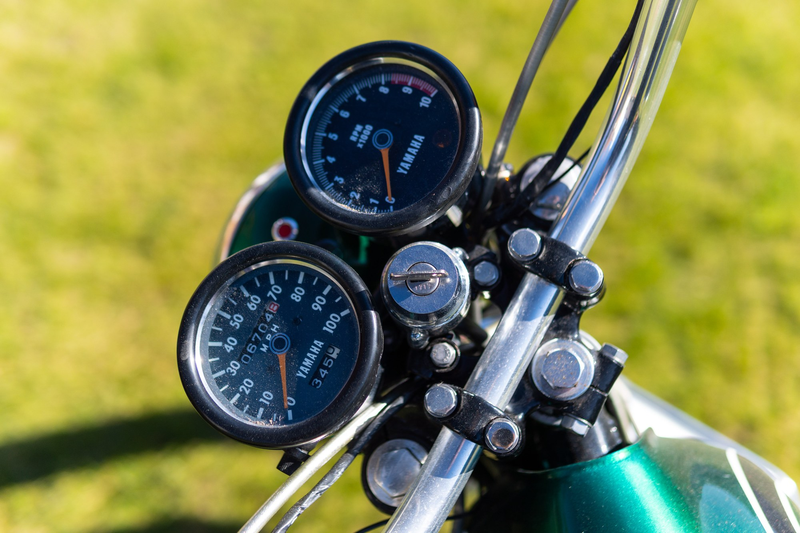 This particular DT is a 1973 model that was imported from America in 2015 by DK motorcycles of Stoke on Trent. The current owner subsequently bought it from DK motorcycles in 2016 and has spent many hours and considerable amounts of money completely restoring it to its original condition. This metallic green model was only produced for one year in '73, making it a highly sought after and incredibly collectible machine.