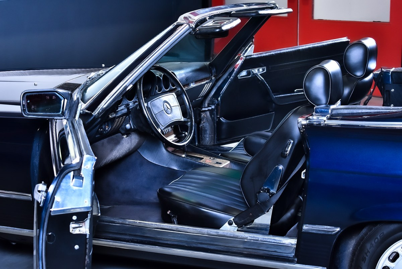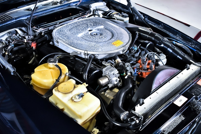 The Mercedes-Benz R107 560SL represents the pinnacle of the iconic SL roadster range, featuring the largest engine offered in the series and available exclusively for the American market. This 1986 example is finished in rare Blue-Black Metallic paint, complemented by newly upholstered anthracite leather seats.