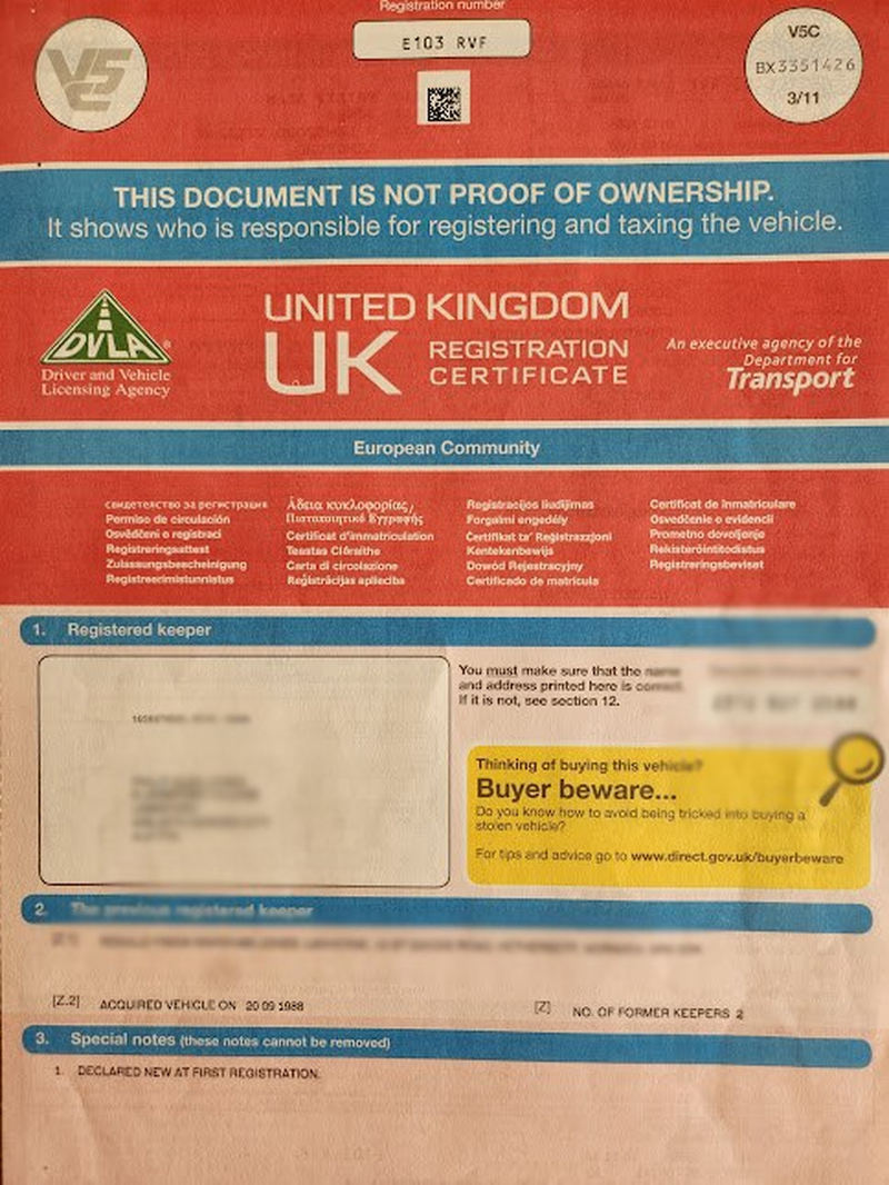 - DVLA records three keepers, likely as the car moved between family members
