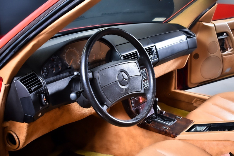 This particular 1991 example stands out with its striking Signal Red exterior paired with luxurious Palomino leather interior - a classic and desirable colour combination. With just 67,262 miles on the odometer, a clean Carfax report confirming its damage-free history, and comprehensive documentation including the original Mercedes Datacard listing all factory options, this SL500 represents a well-preserved example of this appreciating modern classic.