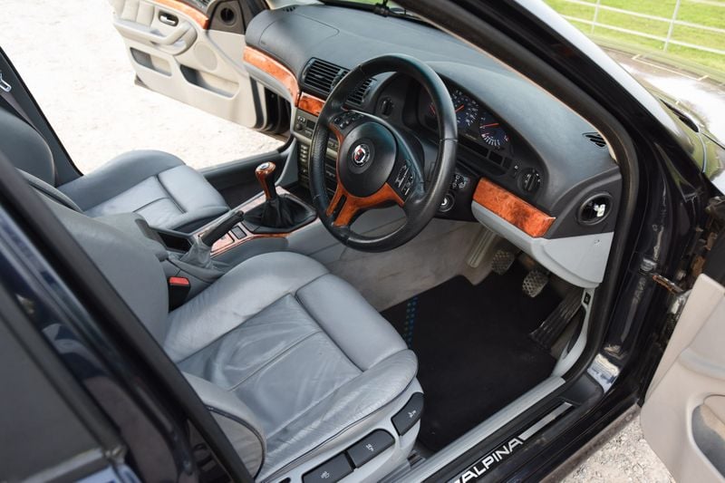 Purchased approximately three years ago after a period of standing, this B10 has benefited from significant investment in recommissioning. Multiple suspension, braking, mechanical, and electrical items have been addressed, and the car has been used regularly since, proving itself reliable. The exterior retains its Nachtblau paint, though there is corrosion on the rear arches and boot lid, typical for an E39 of this age, along with some age-related marks elsewhere. Inside, the grey leather with Alpina blue piping is reported to show only light wear, and the car remains largely factory-standard.