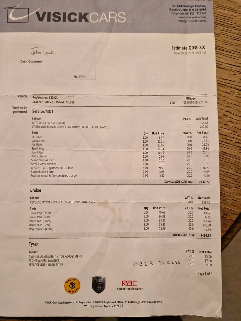 - £1,500 spent by seller since purchase in late 2023 using Saab specialist