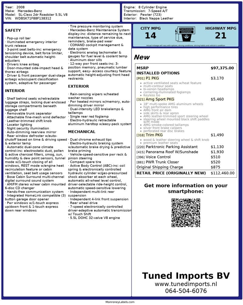 RETAIL PRICE (ORIGINALLY NEW): $122,095.00 (or over €210,000 with these options in the Netherlands)
