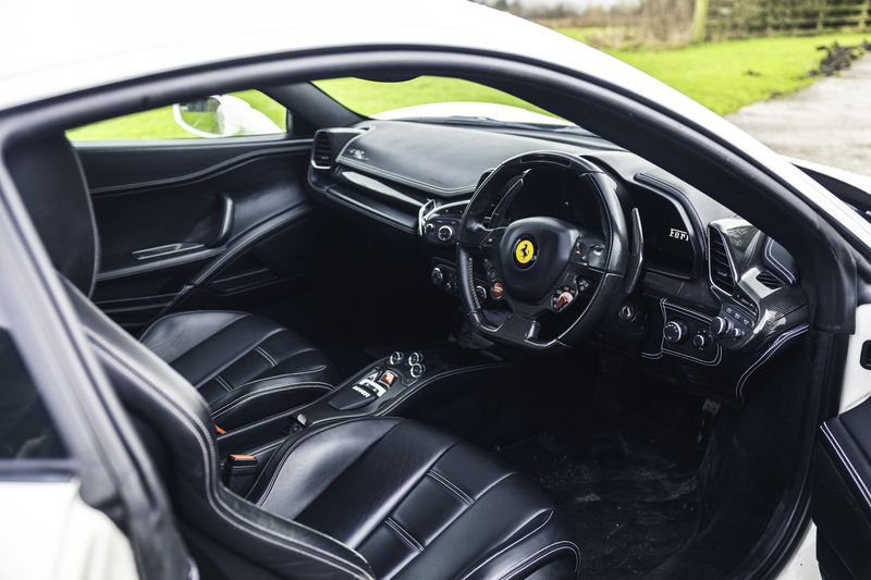 Here, as if by magic, is exactly that. Eschewing more common Rosso Corsa for a subtle Bianco Avus mixed with silver-stitched black leather, this low-mileage 458 is a well-kept and enthusiast-owned car. The current keeper has owned it since 2020 and has taken care to garage it properly and avoid wet weather, using it only on sunny days. He rates it highly.