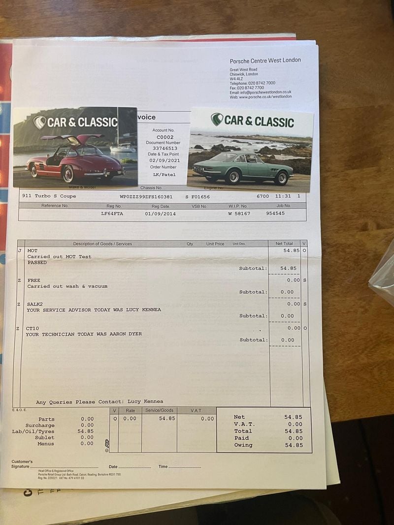 - No MOT advisories: tested by Porsche main dealer in September 2025
