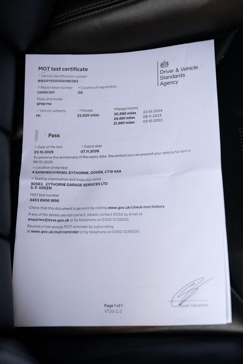 “This M4 has been in my ownership for around 3 years and has been cherished ever since. It’s always been stored in a dry, secure garage, ensuring it stays in top condition. Recently, I had a full service completed, with brand-new Michelin Pilot Sport 4 tyres fitted and an MOT done on 23/10/25. All maintenance has been done with no expense spared, and the full BMW service history backs it up. In short, it’s been pampered and is ready for its next enthusiast!”