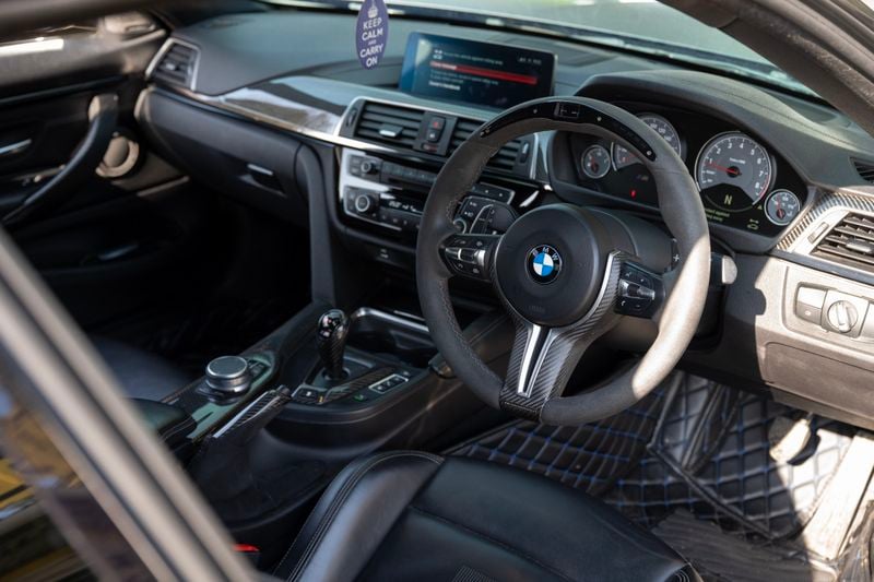 “The interior is in fantastic condition, with all instruments and switchgear working perfectly. It features some unique modifications: a twilight starlight headliner for a luxury feel and a custom steering wheel for a premium touch. Beyond that, it retains all the factory M4 Competition luxuries: heated M Sport bucket seats, a Harman Kardon sound system, and the BMW iDrive with Navigation Professional. It’s both special and impeccably kept.”