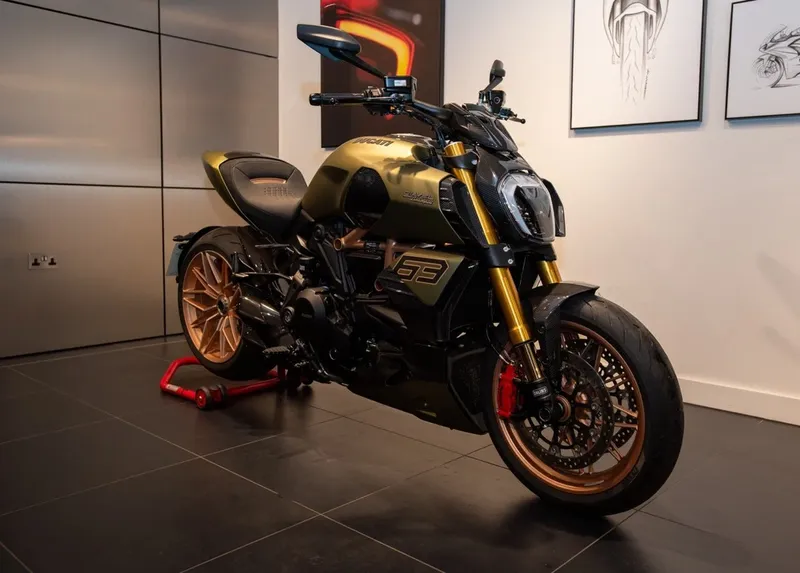 This particular example has covered just 545 miles from new under the care of a single registered keeper. It features carbon fibre bodywork finished in the Sián's signature Gea Green with an Electrum Gold frame, undertail and wheel rims, complemented by classic Ducati red brake callipers. Carbon fibre air intakes, radiator covers, silencer covers, tank covers and mudguards underscore the attention to detail, while the hexagon-shaped exhaust, "Y" detailing on the Alcantara seat and the number 63 on the bodywork further distinguish this limited edition.