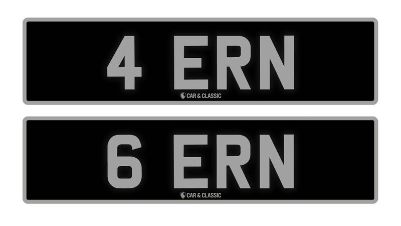 This is a great chance to acquire a matching pair of private registrations. "4 ERN" and "6 ERN" would be perfect as a 'his and hers' set, or as a smart way to tie together a pair of favourite cars. Perhaps your initials are 'ERN', or maybe you have a 4-cylinder car and a 6-cylinder car in your collection that you'd like a unique plate for? Whatever the case, we think this unusual opportunity isn't one to be missed.