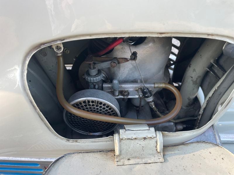This 125LD appears to be a ‘Version II’ model with the twin seats incorporating a grab handle. It is a truly evocative machine that retains period accessories like the box, side panels and spare wheel that are now very hard to find.