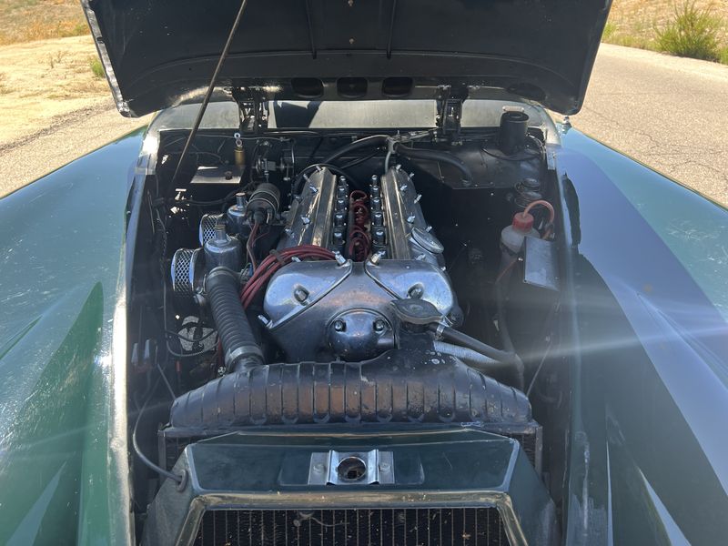 Finished in classic British Racing Green with black leather interior, this 1960 3.8L FHC is in fine, usable condition. It is not concours, but then perhaps you don’t want that from a car you can drive and enjoy. We are told that it drives well, starts easily whether hot or cold, and the Moss manual gearbox operates smoothly.