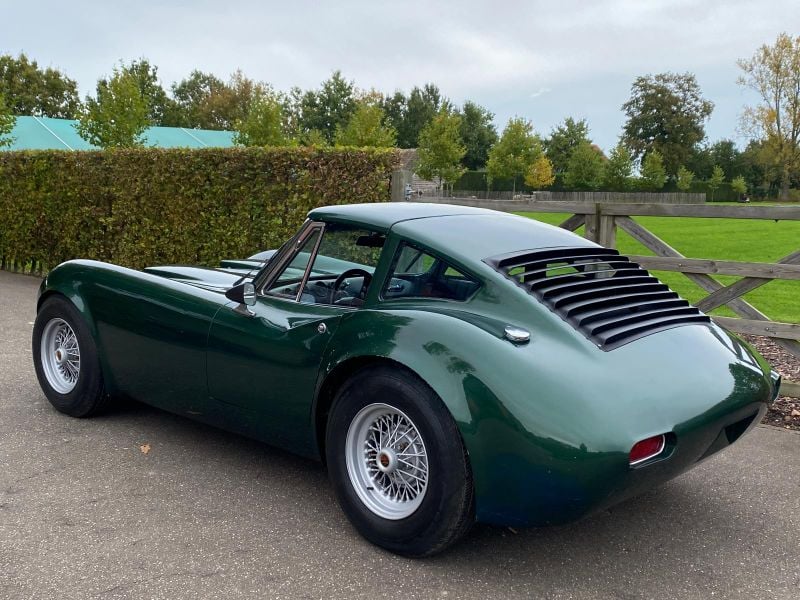 Finished in understated dark green, this car features a modified roof line to make access and egress easier. There is also a Targa roof and swing-arm steering column.