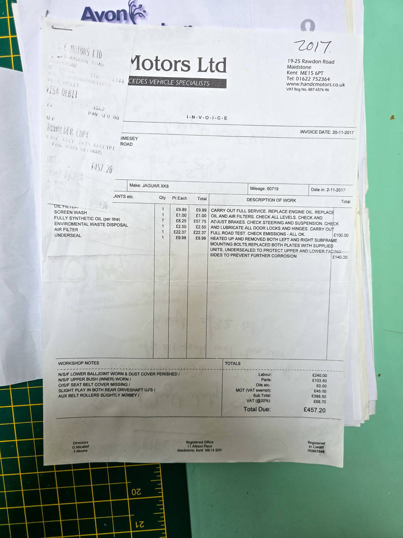 - Various MOTs and invoices as shown